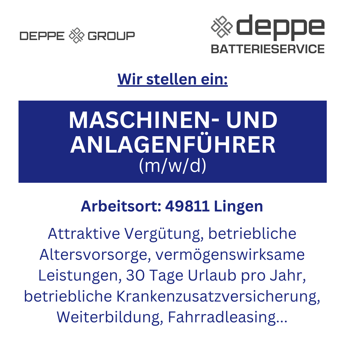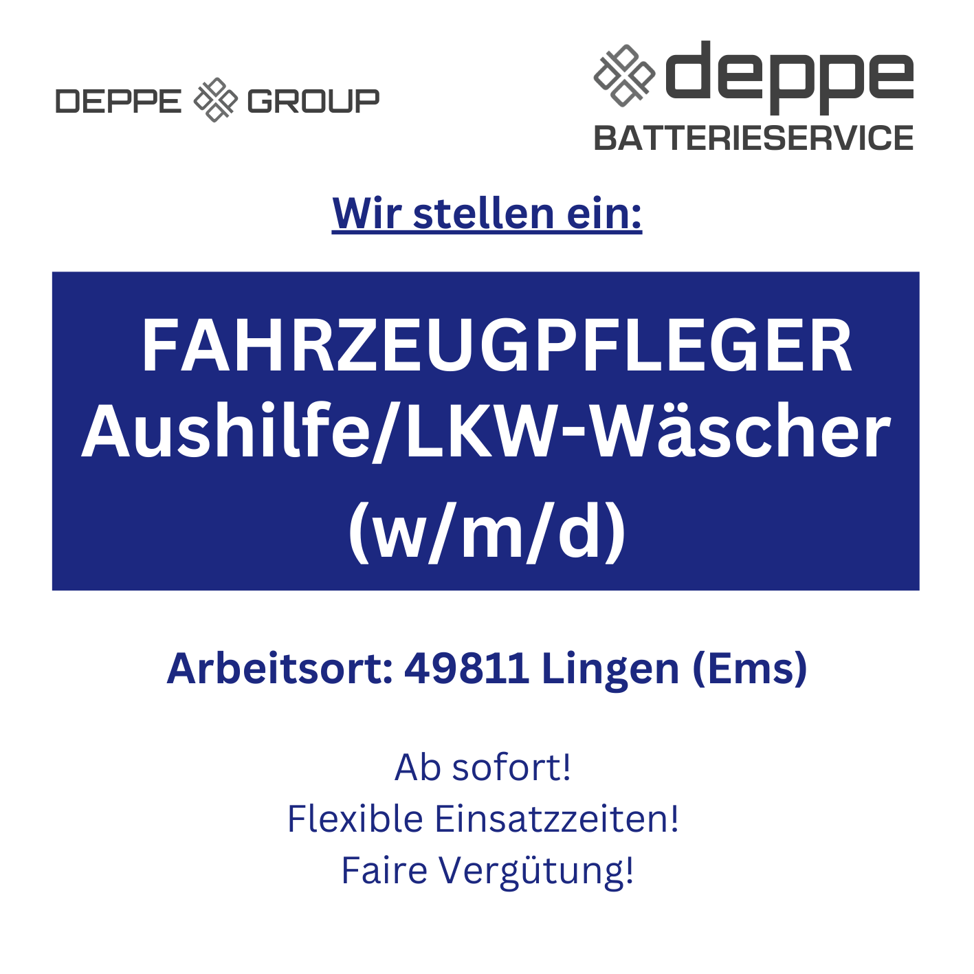 Schick uns deine Bewerbung (Anschreiben, Lebenslauf, Zeugnisse) an: bewerbung@deppe-lingen.de - Ansprechpartner: Herr Jakobs